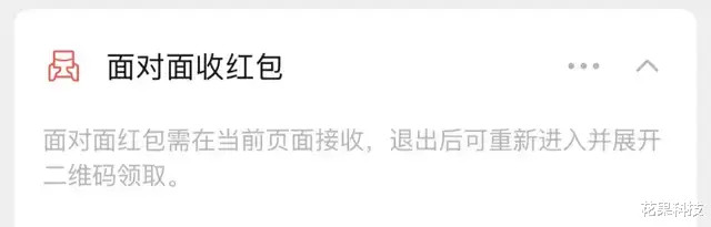 在面对面收红包的界面也由相关提示,需要在当前页面接收,如果退出了的话也可以重新进入并且展开二维码领取。