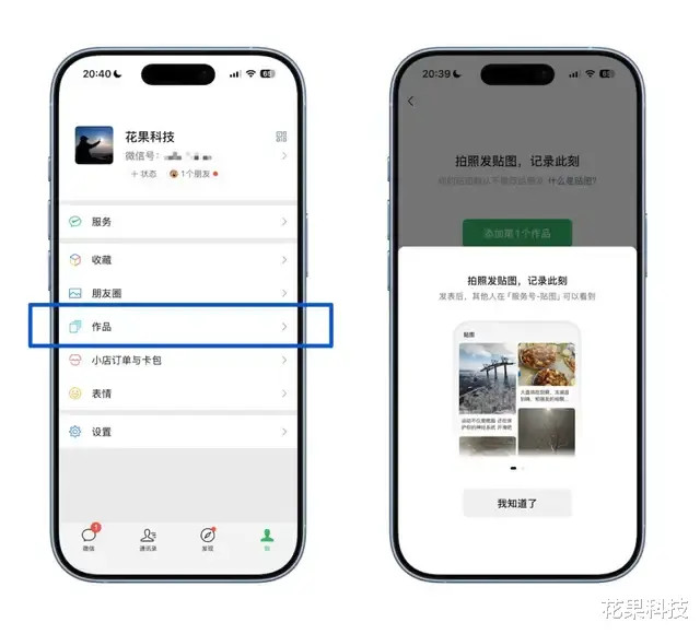 在微信我的界面,新增了「作品」入口,点开之后就可以发贴图作品,记录此时此刻。作品页面不仅可以自己发贴图,也可以查看周边的贴图。
