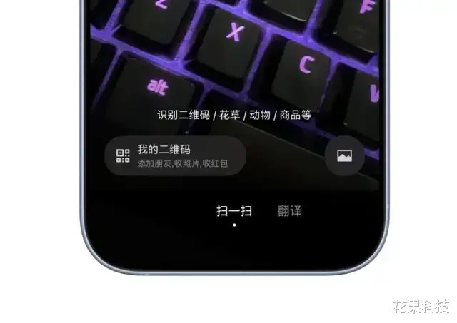 现在打开微信扫一扫,可以发现扫一扫页面有了一些新变化,左下角「我的二维码」按钮进行了扩展,新增了添加朋友,收照片、收红包的提示。