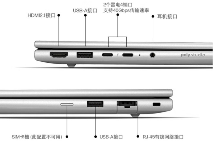 扩展接口部分,惠普战66+ 2025延续了家族特色,2A2C已经是基本操作,除此之外还有HDMI接口和网卡接口,个别机型还配备SIM卡插槽。而且笔记本的2个USB Type-C都是雷电4接口,支持高速传输,扩展能力这块没有短板。