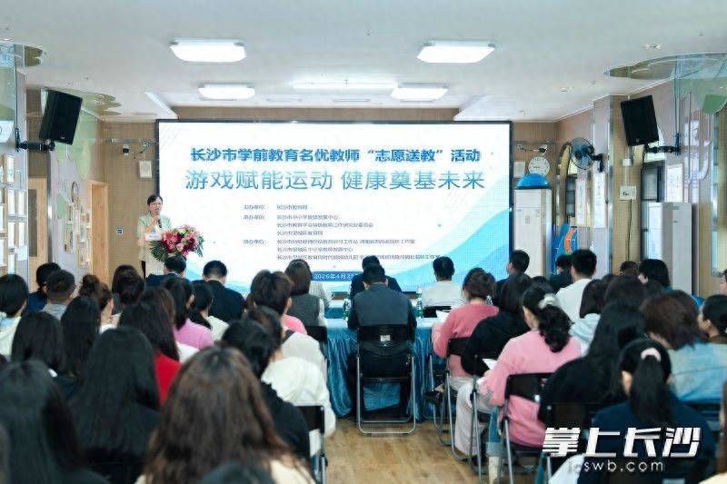 长沙晚报掌上长沙4月25日讯(全媒体记者 陈良 通讯员 谢书琴)25日,由长沙市教育局主办,长沙市中小学教师发展中心(长沙教育学院)、长沙市教育学会特级教师工作研究专业委员会、望城区教育局联合承办的学前教育名优教师“志愿送教”活动,在望城区教育局时代倾城幼儿园举行。此次活动以“游戏赋能运动 健康奠基未来”为主题,紧扣幼儿健康领域发展需求,通过“示范教学—研思对话—体系构建—专业提炼”的一体化教研模式,为望城区180多名幼儿园教师带来兼具理论高度与实践深度的专业赋能。